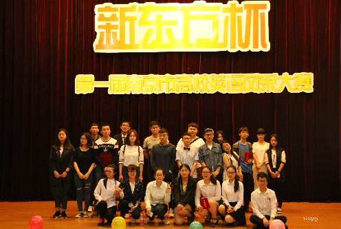 最终代表我校参赛的三组表演,陈瑶同学的歌曲获得一致好评,刘凯悦等同学的美剧配音获得二等奖,而在复赛中获得一等奖的王昱颢等同学带来的话剧表演《非诚勿扰》也在本次比赛中夺冠。比赛圆满结束后各校选手及嘉宾上台合影留念,不论比赛结果如何,各校都通过此平台展现了自我才能,并加强了各兄弟院校英语学习的经验交流,是不可多得的宝贵机会!也让我们对下一届“新东方杯”南京市高校英语风采大赛充满殷切期望!