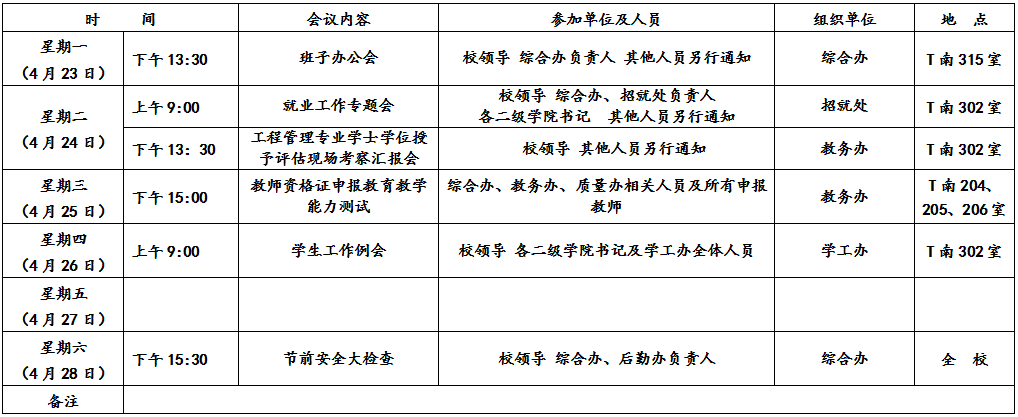 【会表】第八周会议及主要工作安排表 (2018年4月23日—4月28日)