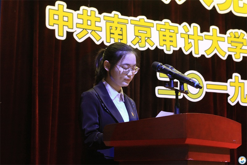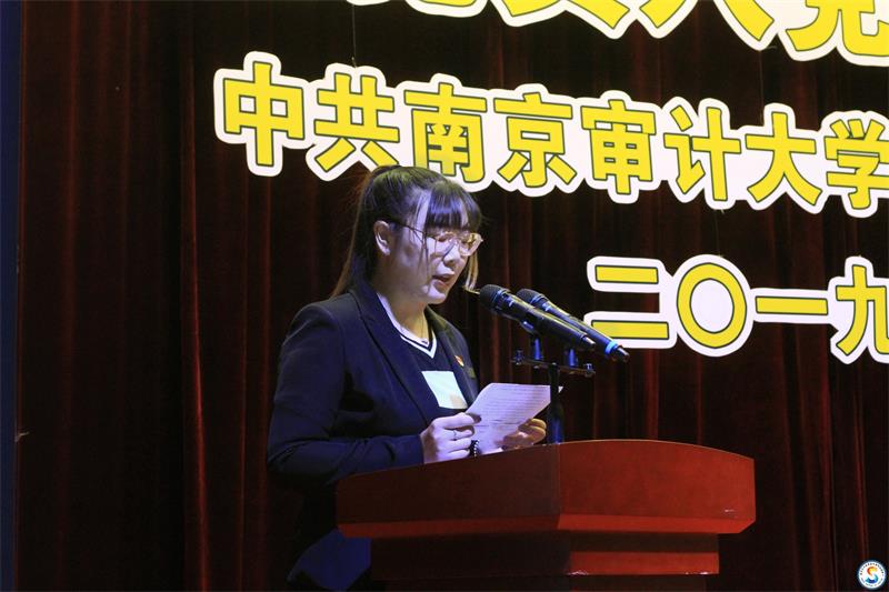 艺术设计学院2015级环境设计2班沈贤同学、会计与审计学院2016级会审实验班黄晨洁同学、金融与经济学院2017级税收1班毕文菁同学代表新党员分别进行表态性发言。她们表示将以自己的实际行动拥护党的纲领,遵守党的章程,履行党员义务,不忘初心、牢记使命,不断提升自身素质,在今后的学习、工作和生活中永远铭记今天的铮铮誓言,坚定共产主义信念,全心全意为人民服务,成为一名合格的中国共产党党员。
