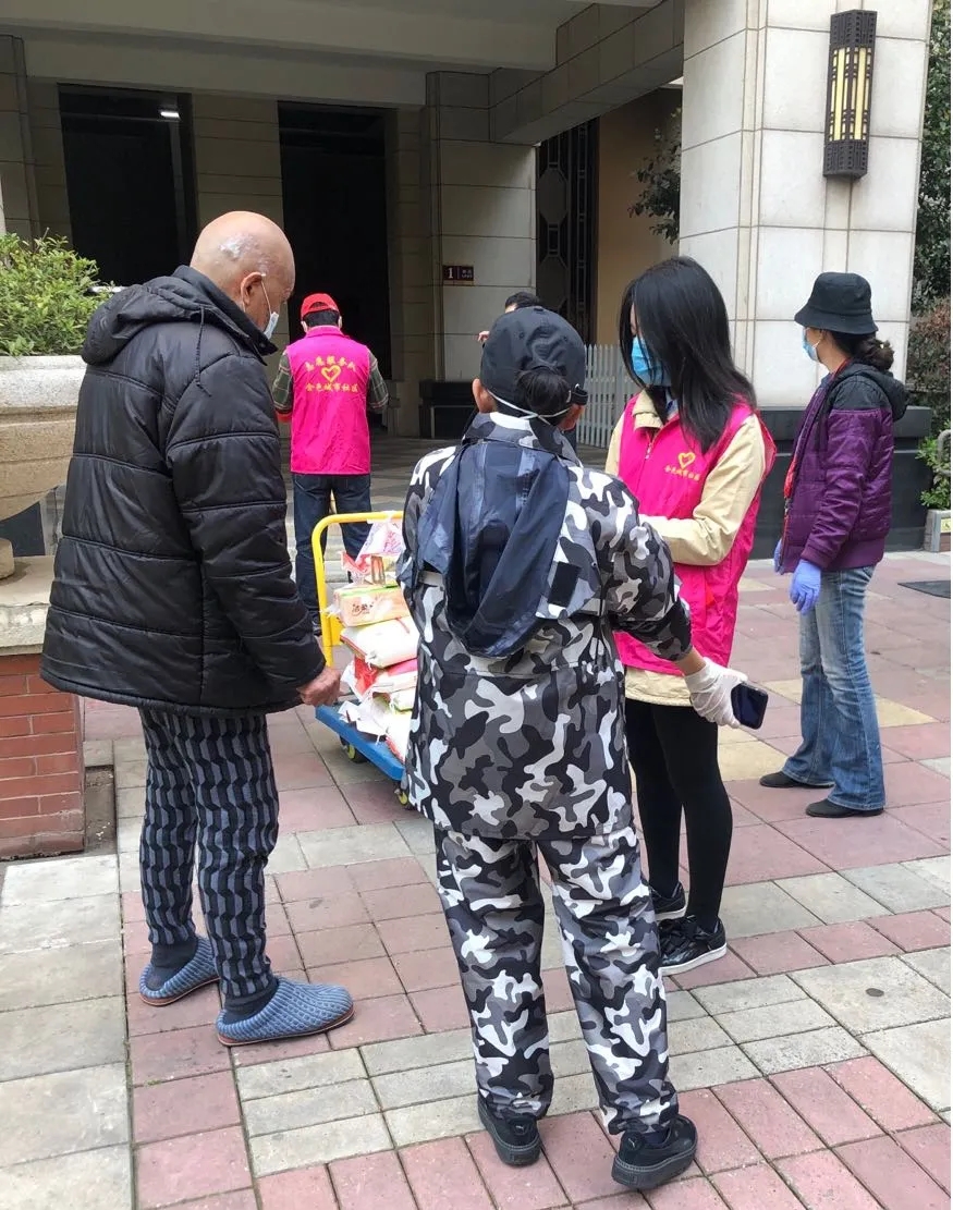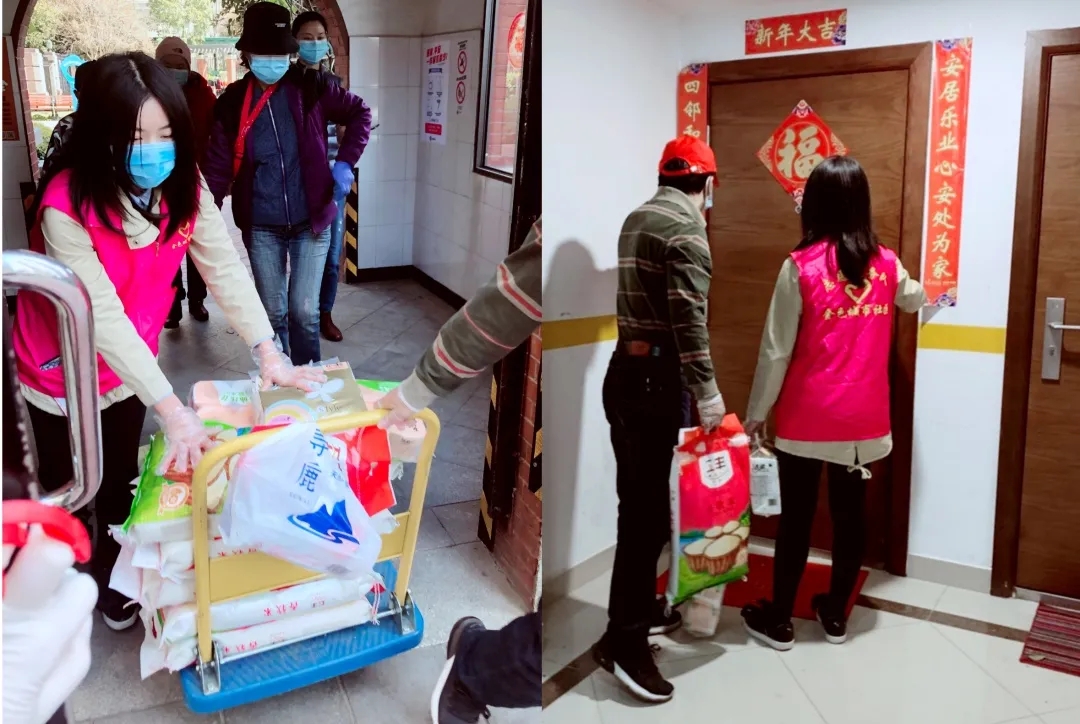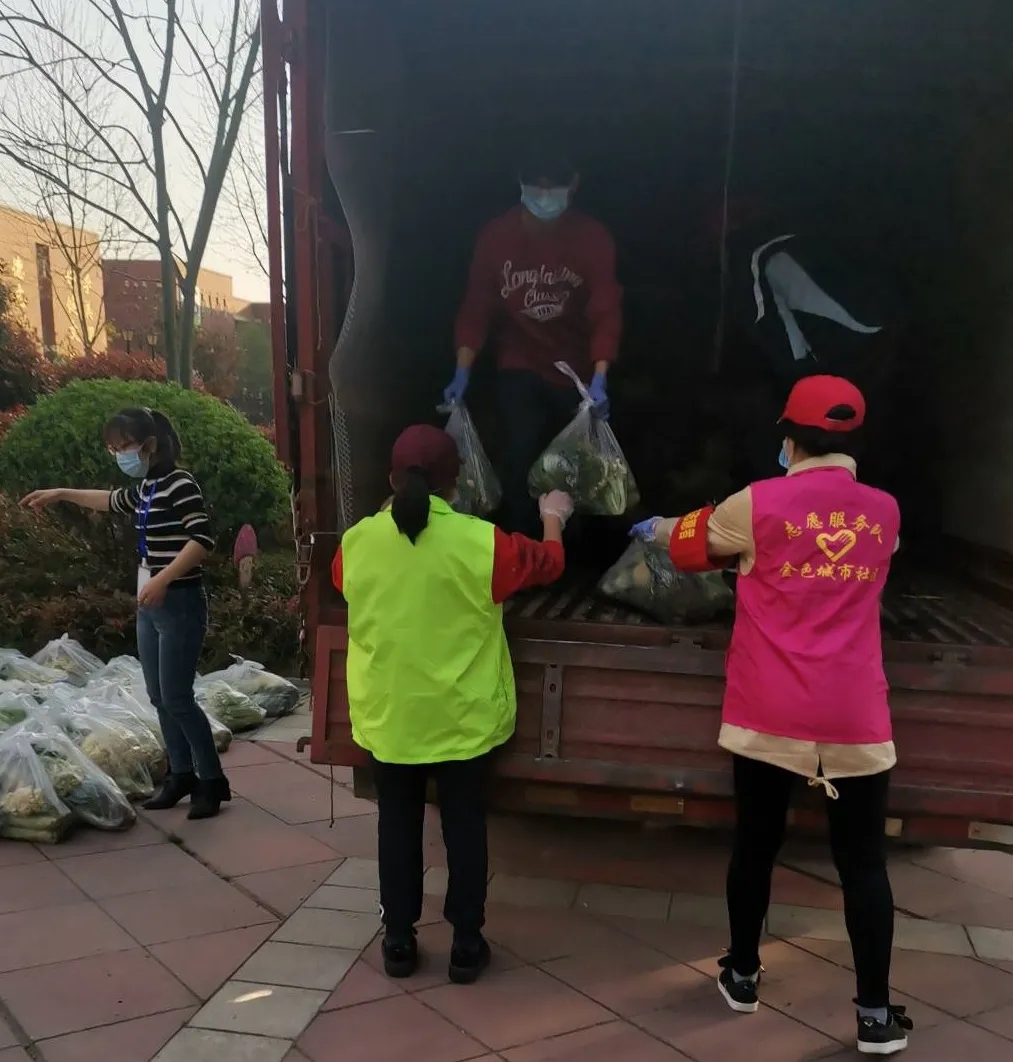 渐渐地分菜领菜成为了武汉人民的日常,会审学院的邵萱就是一名小区防疫志愿者。小编在采访中了解到,社区工作者通过渠道牵头蔬菜供应商,由志愿者联系商家。联系接洽后,社区工作者在小区公告群中发布具体采购事宜,居民线上表达诉求,志愿者线上协调并统计蔬菜清单。为了减少面对面交流,避免交叉感染,蔬菜到达小区后,由志愿者打包分好,居民们需要根据前期排好的顺序依次下楼取菜。邵萱的工作是收取往来居民的购菜现金、登记明细、核对货物清单并为居民进行酒精消毒。遇到蔬菜送货量大时,她也会帮助同伴从蔬菜货车上卸货。若是碰到孤寡老人,她还时常送货上门。她说,整整一天的服务有时累得腰酸背痛,但心里总是开心的。