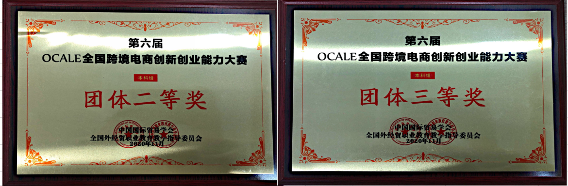 日前,由中国国际贸易学会、全国外经贸职业教育教学指导委员会主办的第六届OCALE全国跨境电商创新创业能力大赛圆满结束。金融与经济学院国际经济与贸易专业两支参赛队伍在谢海燕、丁婷和王玲侠老师的指导下,在比赛中分别获得本科组团体二等奖和团体三等奖。