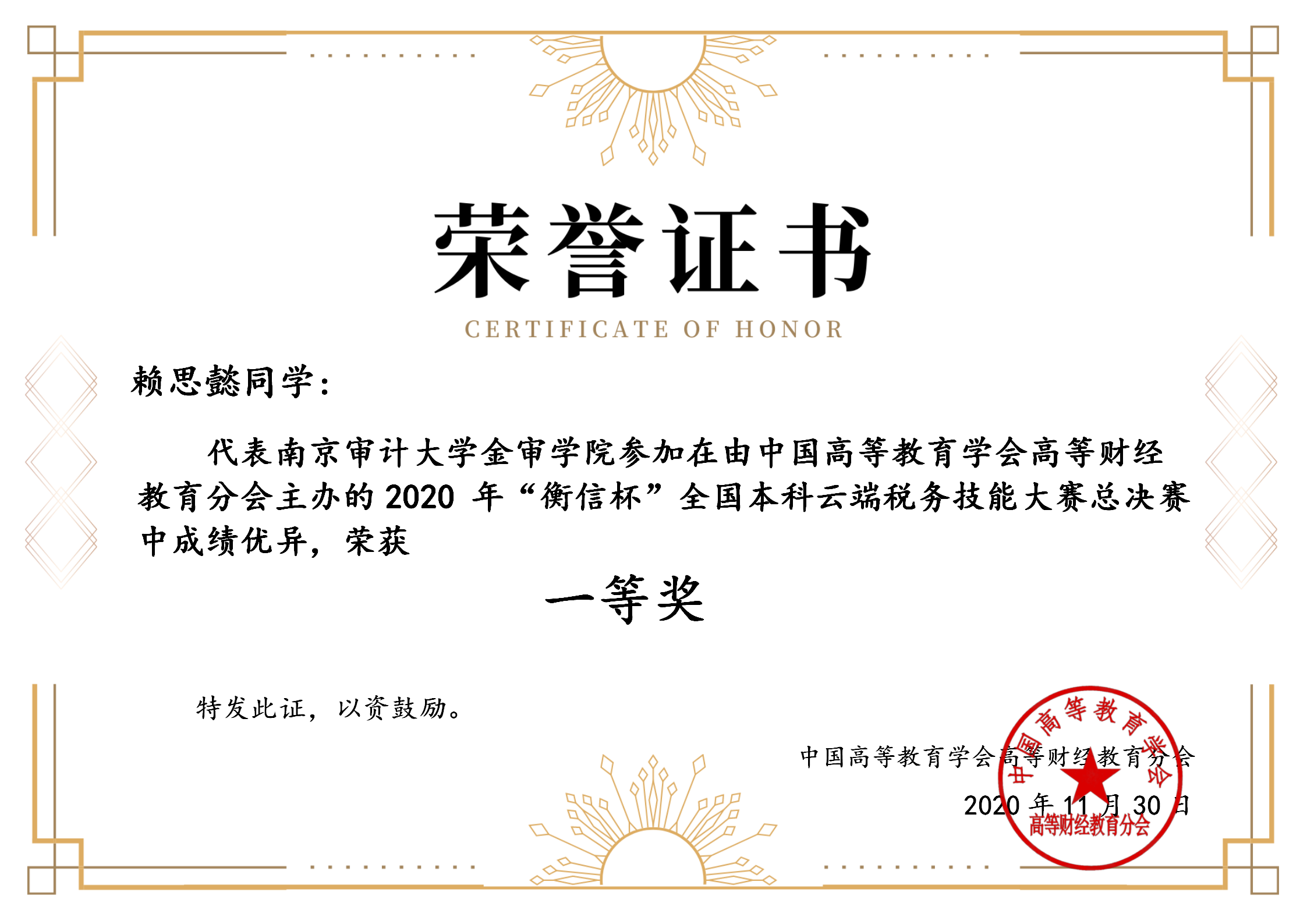 “衡信杯”税务技能大赛是全国最具影响力的大型财税技能竞赛项目,竞赛分海选赛、初赛和决赛三个阶段,由于疫情原因比赛全部在线上进行。参加决赛的四位同学经过10月26日举行的华东区初赛选拔,以一等奖的优异成绩进入11月28日的全国总决赛。决赛分为理论与实操两个阶段,理论阶段涵盖税务、会计等方面的基本知识。实操阶段参赛同学在随机抽签下产生税员、税务主管等四个岗位办理纳税申报、汇算清缴等日常业务,充分地展示了学生的税务岗位通用技术和职业能力。