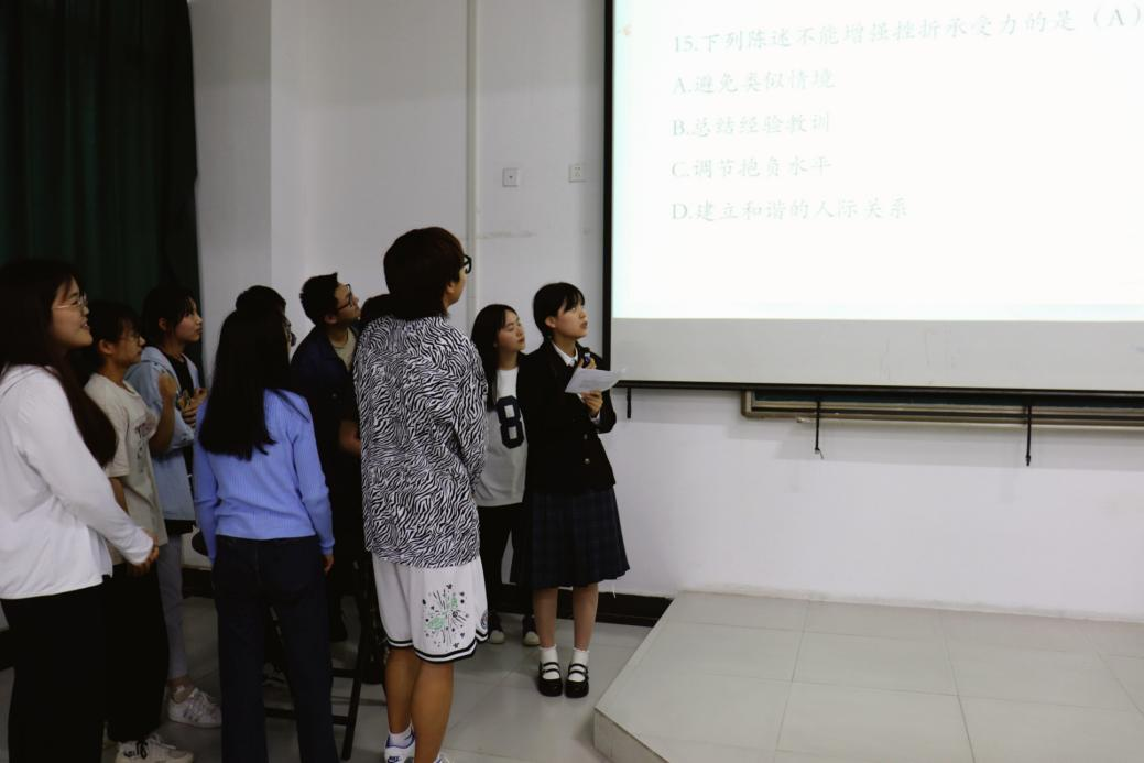 参赛小组派一个代表上台进行抢答,回答正确便能给自己的队伍加一分。心理委员会希望同学们能在游戏的过程中,以简单轻松的答题方式获取更多的心理知识,提高自己的心理健康知识水平。