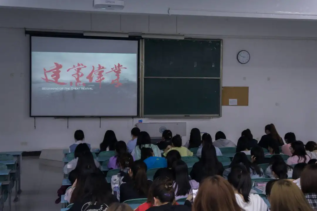 在教师教育学院学生党支部党史宣讲团的组织下,同学们共同观看了《建党伟业》,影片讲述辛亥革命爆发以后,以陈独秀、李大钊、毛泽东为代表的仁人志士创建中国共产党的故事。影片以时间为轴线,把重大历史事件和重要人物结合推进,从而得出一个结论,那就是中国共产党诞生是顺应时代潮流,更是历史的必然。