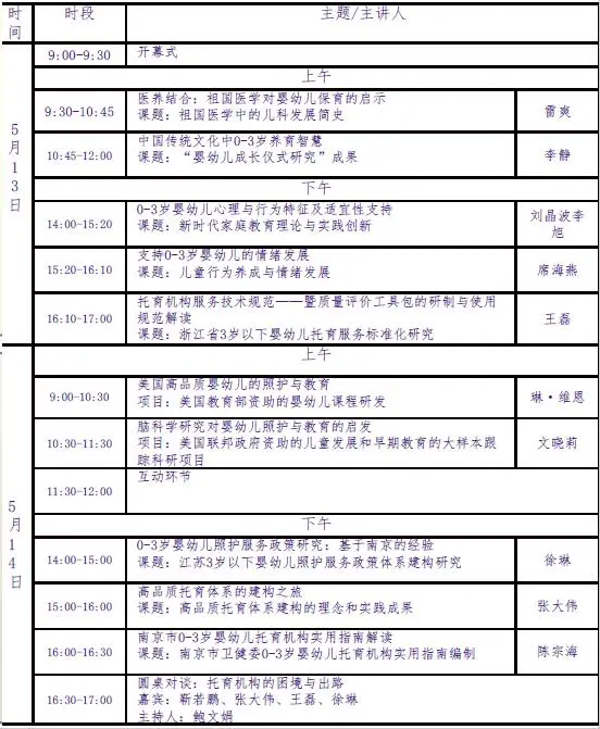 此外,南京师范大学教授、博士生导师刘晶波和南京师范大学学前教育学硕士、高级教师李旭主讲课题《新时代家庭教育理论与实践创新》;南京师范大学学前教育学博士席海燕主讲课题《儿童行为养成与情绪发展》;南京师范大学学前教育学博士、浙江师范大学杭州幼儿师范学院学前教育系副主任兼副教授兼硕士生导师、0-3岁婴幼儿保教研究中心主任、国家留基委资助赴日本广岛大学访问学者王磊主讲课题《浙江省3岁以下婴幼儿托育服务标准化研究》;琳·维恩主讲课题《美国教育部资助的婴幼儿课程研发》;美国国立路易斯大学早期教育系的终身教授、南京师范大学客座教授文晓莉主讲课题《美国联邦政府资助的儿童发展和早期教育的大样本跟踪科研项目》;南京师范大学学前教育学博士、江苏第二师范学院学前教育学院副教授徐琳主讲课题《江苏3岁以下要幼儿照护服务政策体系建构研究》;惠洛克国际儿童之家创始人、KINDERHOUSE GROUP国际幼儿园管理公司创始人、美国幼教年会商务访问团团长、国际幼儿园园长、超级奶爸张大伟主讲课题《高品质托育体系建构的理念和实践成果》;南京师范大学发展与教育心理学硕士、国家高级心理咨询师陈宗海主讲课题《南京市卫健委0-3岁婴幼儿托育机构实用指南编制》。
