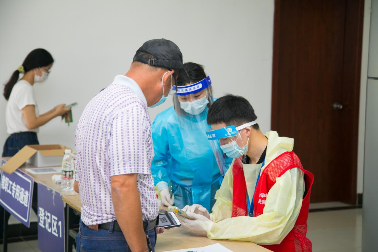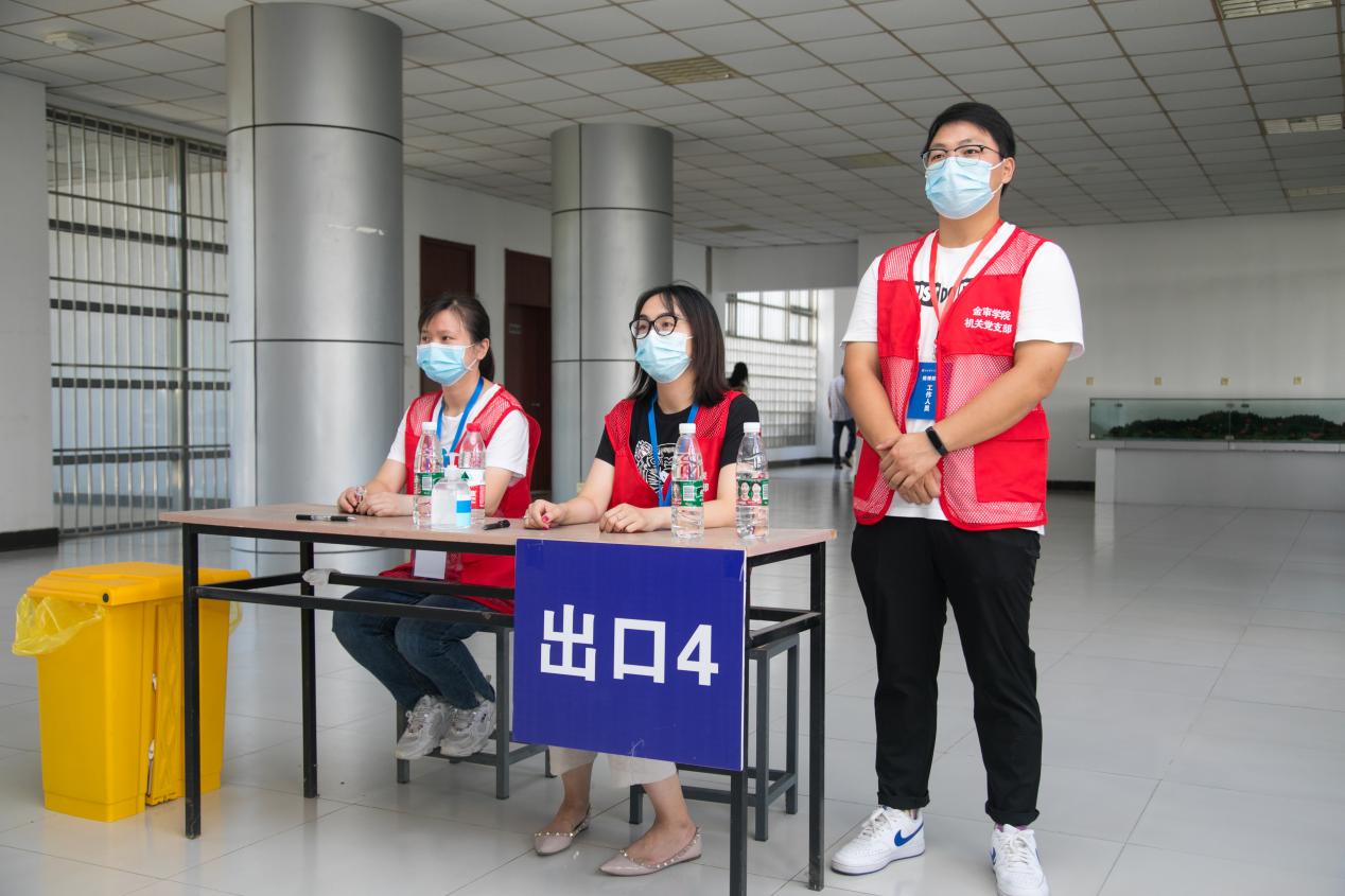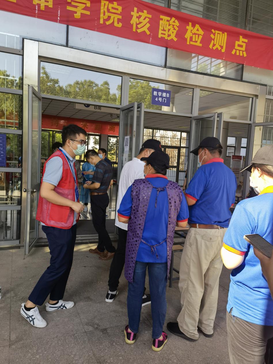 党员亮身份比奉献,争当防疫先锋。一个党员就是一面旗帜,一个支部就是一座堡垒,所有参加疫情防控的机关党员志愿者们统一着红马甲上岗。采取轮岗的方式,组织党员到学院各防疫工作点,与学院教师志愿者、学生志愿者们一起参与执勤值守、协助核酸检测、学生引导、信息排查的工作,坚定地站在疫情防控第一线,共同筑起一道人物同防的坚强壁垒。