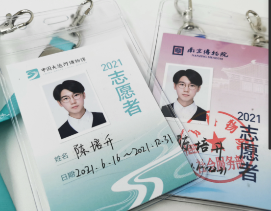 源自对中国传统文化的热爱,陈培升大一时参加了南博金审团队的招新。经过三轮面试两轮笔试和三个月的实习期,正式成为南京博物院的一名志愿者。