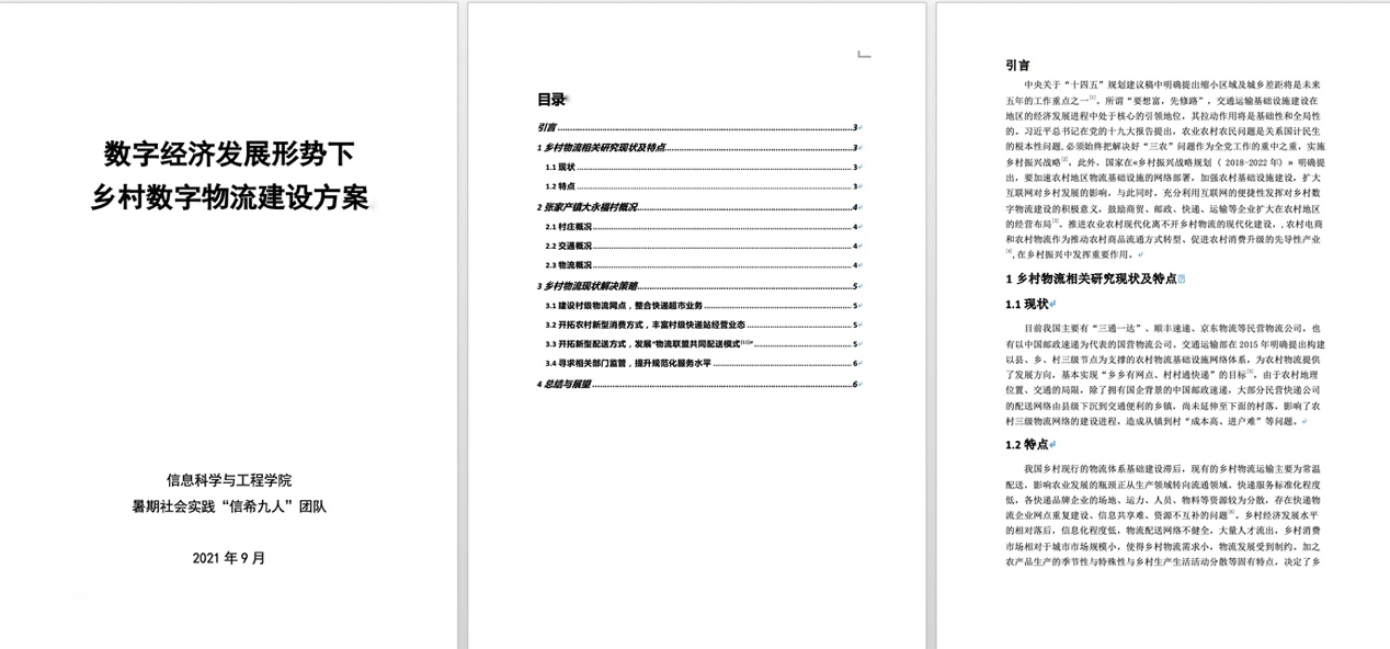 最终团队成员综合形成了《数字经济发展形势下乡村数字物流建设方案》。