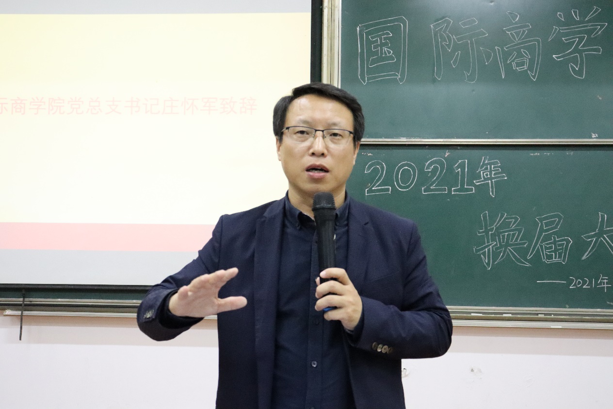 莅临本次大会的有国际商学院党总支书记庄怀军、分团委书记马浩杰,各年级辅导员胡宗康老师、段天彤老师、周进杰老师。