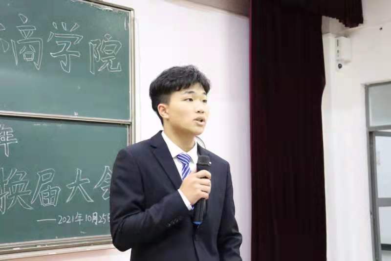 在过去的一年中,国际商学院分团委、学生会涌现出一大批杰出人才。上一届国际商学院学生会主席徐梓淳发言寄语,他说道:“希望新一届分团委学生会的干事们能够享受大学生活,用热爱去燃烧青春。”