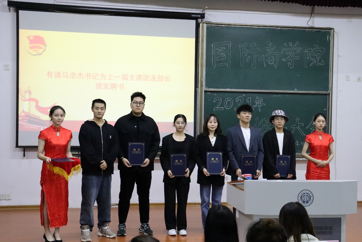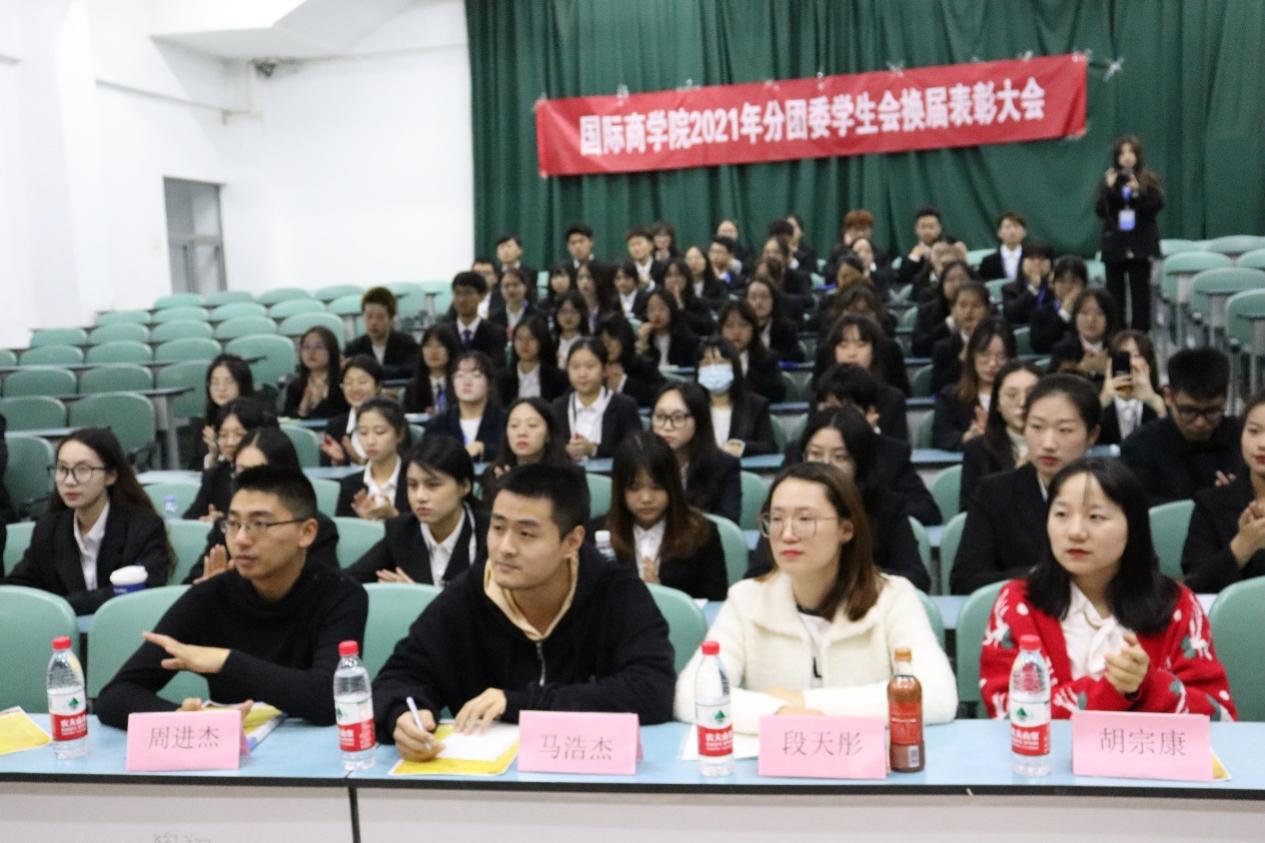 2021年10月25日晚,2021年南京审计大学金审学院国际商学院分团委学生会换届表彰大会于B南108隆重举行。凡是落幕,皆为序章。大会在庄严的中国共青团团歌声中拉开序幕。