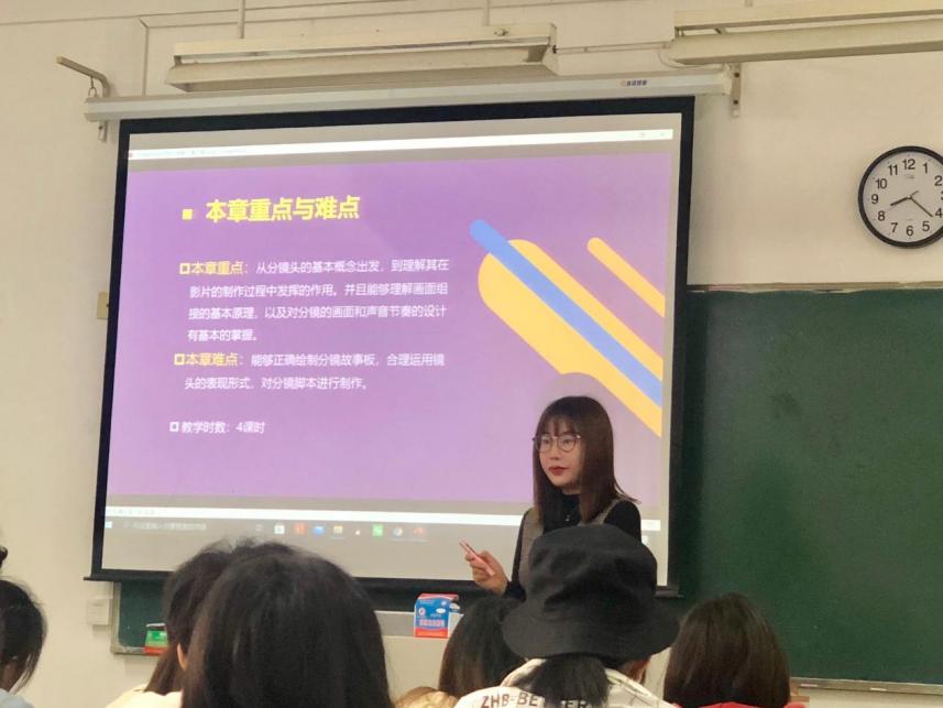 此次公开课的课程为《视听语言》,为数字媒体艺术专业学生的专业基础课。陈老师为这次课程做了充足的准备,在进行理论知识讲授的同时,也主动引导学生调动自己的积极性,从而主动思考。在课堂上创设情景,激发学生的思维发散能力,学生们能够沉浸其中,认真吸收的同时也能很好的遵守课堂纪律,课堂气氛生动良好。