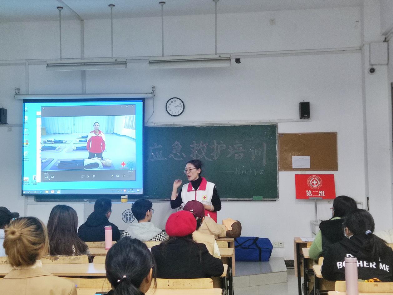 为增强学生应急救护知识技能,提高学生自救互救能力,校学工办、校红十字会联合南京市栖霞区红十字会,开展“应急救护进校园”活动,对我校2021级学生分批进行应急救护相关技能的培训。11月10日下午第一批260名同学参加了培训。