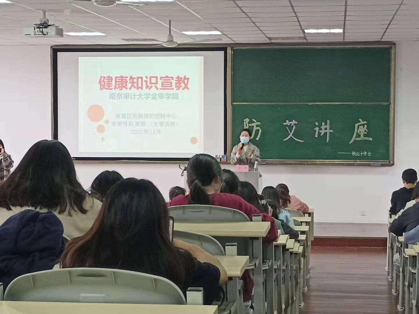 我院学工办、红十字会邀请了南京市栖霞区疾控中心唐蓉医生为同学们带来了防艾专题讲座。