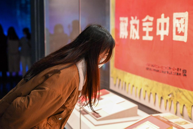 大家或驻足凝望,或用心聆听。渡江战役的胜利,充分展示了党领导下的人民军队和人民战争,无坚不摧、无往不胜的巨大力量, 渡江战役历时42天,解放全中国。全体党员对渡江战役都有了更加鲜活、深刻的认识。