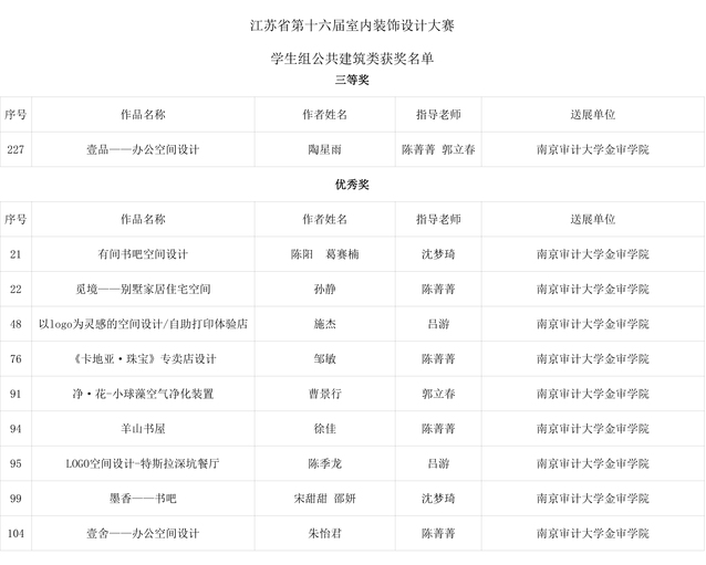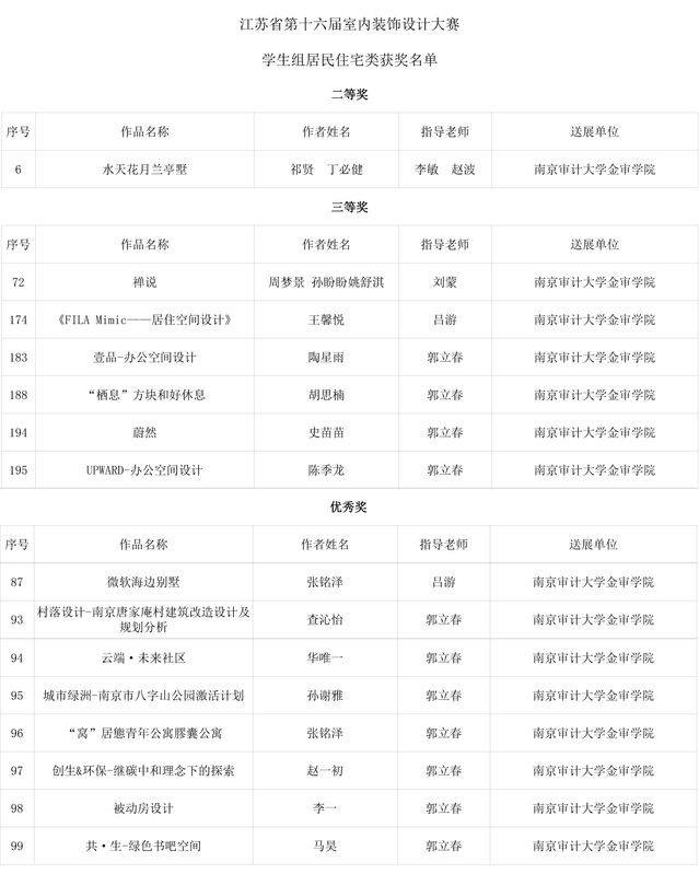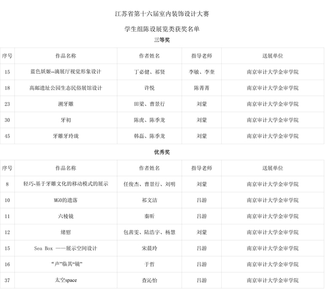 近期江苏省第十六届室内装饰设计大赛作品评审会圆满落幕。在艺术设计学院多位教师的悉心指导下,我院学生在此次大赛上荣获学生组二等奖1项、三等奖12项、优秀奖24项。