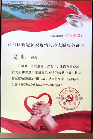 新冠肺炎疫情来势汹汹,志愿工作也充满着起伏与坎坷,但这些都是征战疫情必须要经历的。当我们打赢这场抗击疫情之战,便觉得之前经历过的所有委屈、焦虑和恐慌也不过尔尔,最重要的仍然是这一段路途中知识的补充、心智的磨练。最难能可贵的是,爱心与责任心相辅相成,经时间的沉淀完善了我的人格。除此之外,志愿者工作不仅锻炼了我与陌生人沟通的能力,培养了我的耐心,更是体验到那些普通劳动者工作的平凡与伟大。我为在基层防控疫情的岗位上兢兢业业工作的普通劳动者点赞!更为自己能够在家乡防控疫情工作中尽一己绵薄之力而自豪!