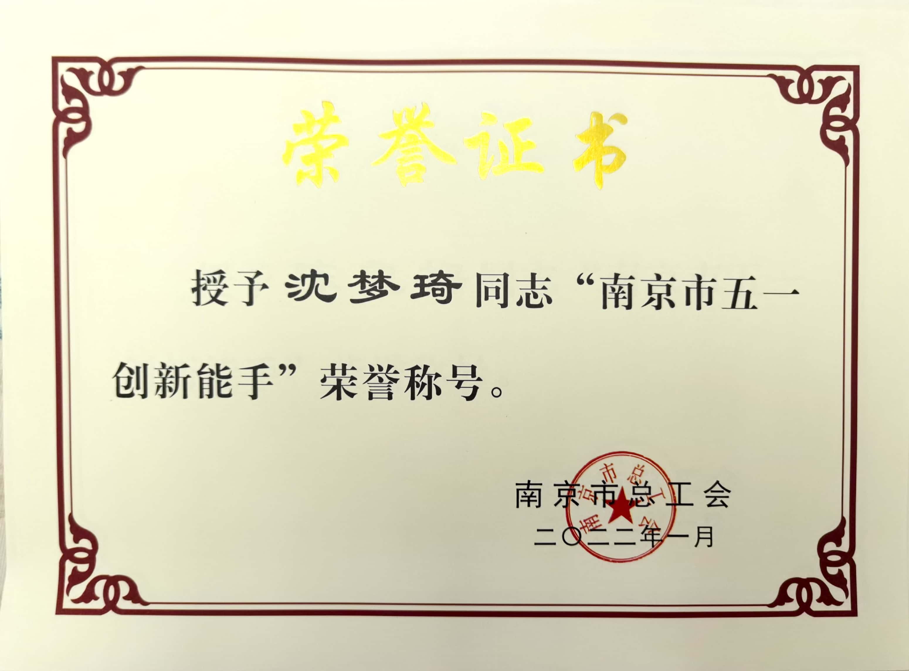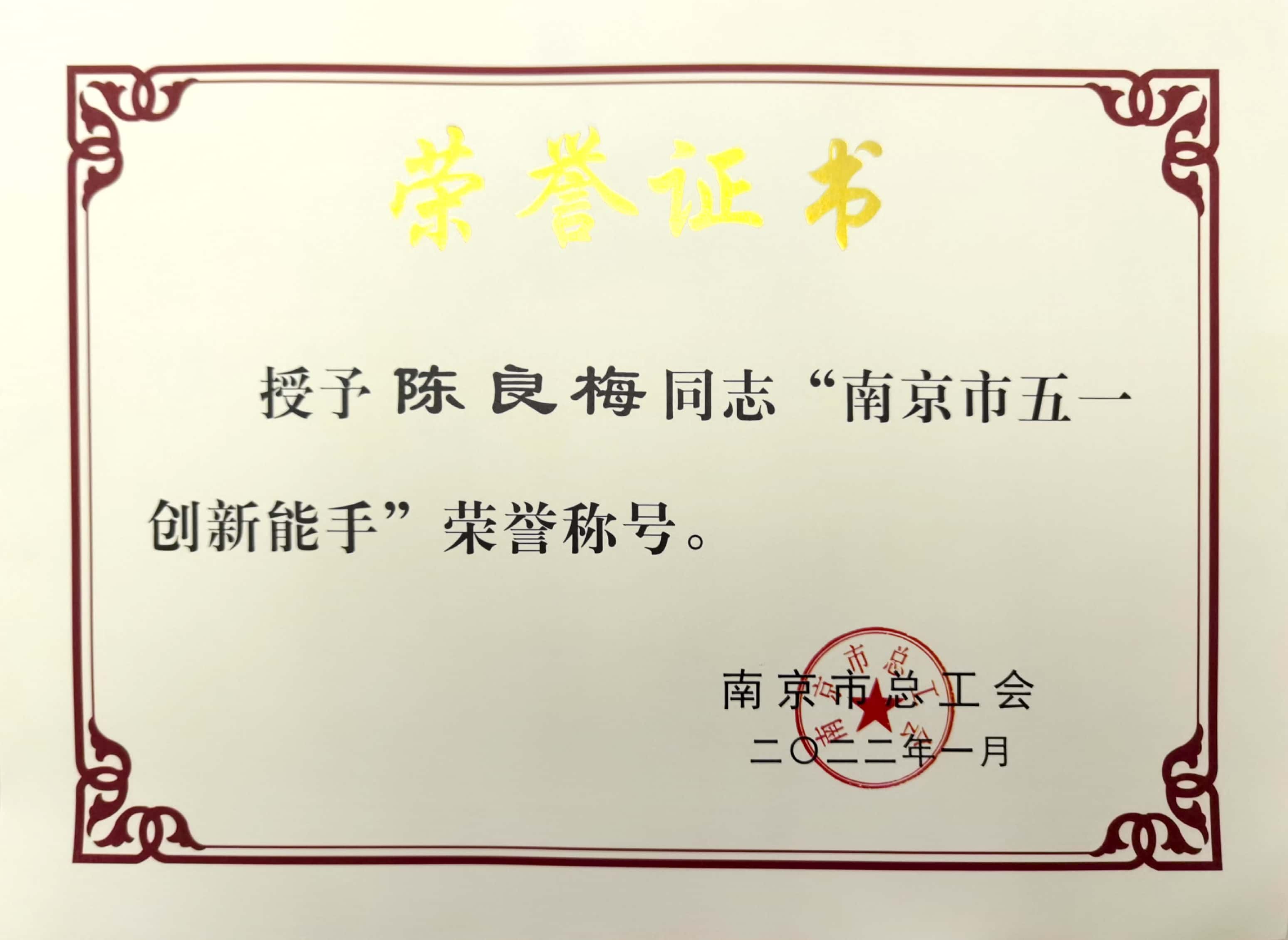日前,根据南京市总工会发文《关于授予南京市第四届乡土人才传统技艺技能大赛暨助力乡村振兴技能竞赛获奖选手“南京市五一劳动奖章”和“南京市五一创新能手”称号的通知》(宁工发〔2022〕4号),艺术设计学院环境设计专业教研室主任吕游同志荣获南京市总工会授予的“南京市五一劳动奖章”称号。环境设计专业陈良梅、沈梦琦、刘蒙、付小曼四位同志荣获南京市总工会授予的“南京市五一创新能手”称号。