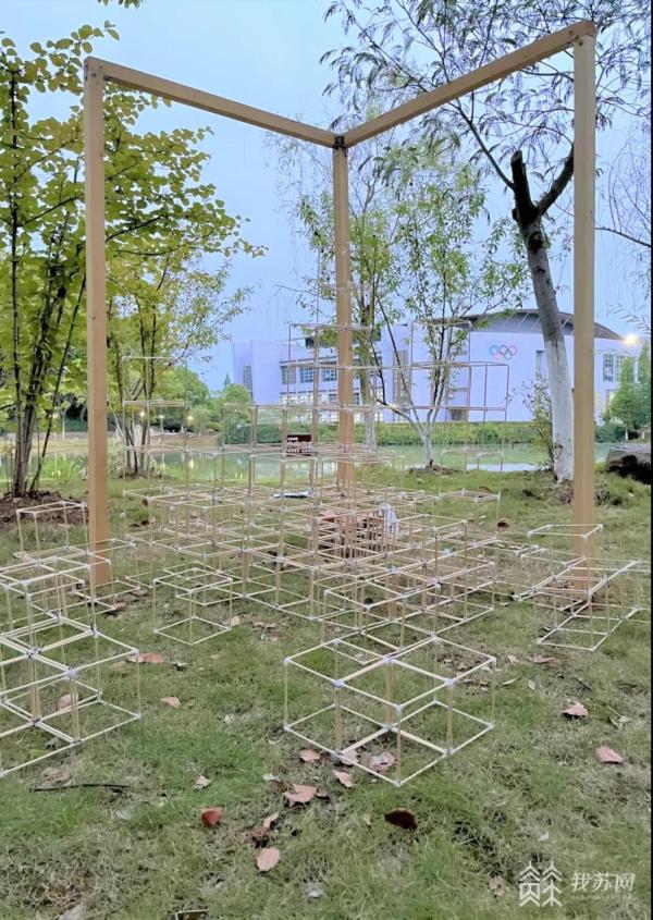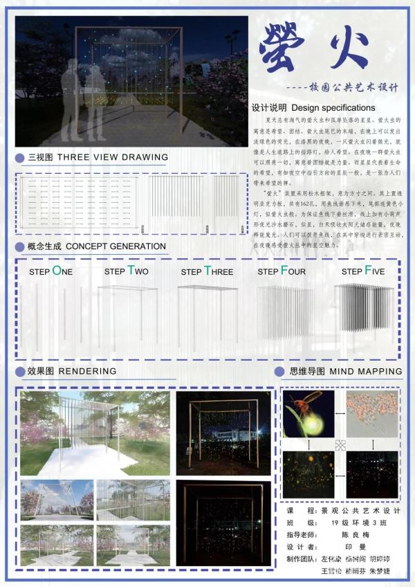 这些作品都是孩子们在陈良梅老师的《景观公共艺术设计》课程中设计出来的,用二维、像素化等不同的设计手法,将灵感化为形体,展现出新一代大学生们对时代的认知、肩负的使命,通过实景施工,更是让同学们体会到工匠精神和劳动教育的可贵。