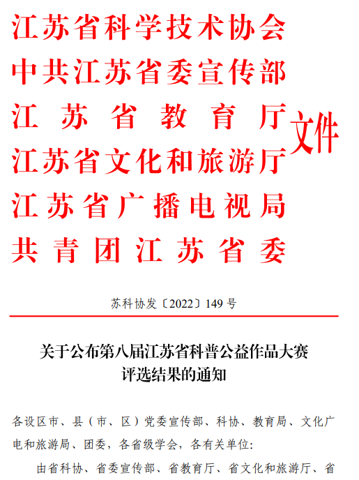 由省委宣传部、省科协、省教育厅、省文化和旅游厅、省广电局、团省委主办,省科学传播中心和省科教影视协会承办的第八届江苏省科普公益作品大赛评审结果已公布。此次大赛共分为三个组别、四个类别作品7903份,艺术设计学院积极组织师生参与本项公益赛事,共有22份作品脱颖而出,获奖23项,其中一等奖1项,二等奖2项,三等奖14项,优秀奖5项,优秀组织奖1项。