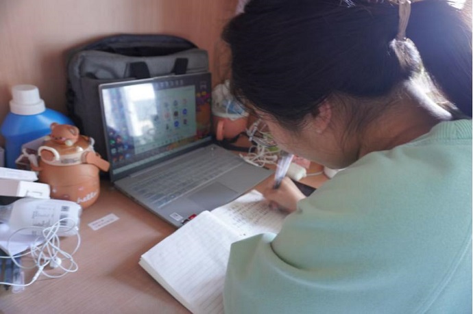 在网课的学习环境下,老师没有办法实时了解学生的学习情况,所以需要学生更高的学习自觉性。通过我们的采访得知,这些同学能很好地做到独善其身,不受外界干扰和诱惑,将自己学习工作做好做精。在条件允许的情况下他们也会带上设备去教室上课,尽力营造良好学习环境。同时他们还有效利用自己自由支配的时间,解决课上遗留问题。同学们积极向上的奋斗姿态也感染着我们每一个人,从而自发营造线上高效课堂,让知识之风吹遍整个校园!