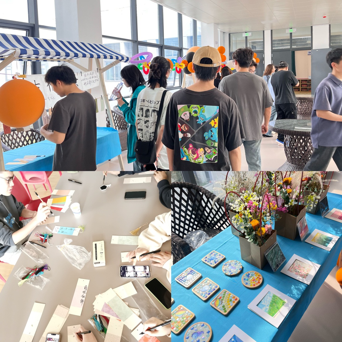 天地阅览室,万物皆书卷。为打造书香品牌的艺术创意趣味市集,吸引了众多学生走进图书馆。艺术学院学生创作的作品内容涵盖了绘画、手工艺品、文创产品等多种艺术表现形式,艺术理念新锐独到,创意想法和表现手法丰富多样,这些作品充满了青春的态度和向上的精神。活动提升了图书馆的人文功能,打造了金审学院的创客空间。