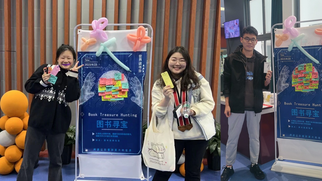 同学们通过“索书号”线索,搜寻对应图书,获得了心仪的小奖品,寻宝活动提高了学生的阅读兴趣,也活跃了校园学习氛围。
