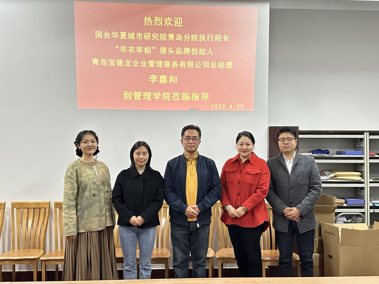 425日,管理学院组织访企拓岗座谈会,邀请了国合华夏城市研究院青岛分院执行院长、“布衣宰相”猎头品牌创始人、青岛宝德龙企业管理服务有限公司总经理李嘉和先生来管理学院座谈。