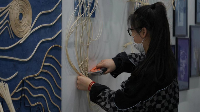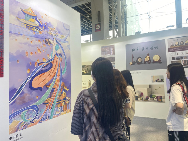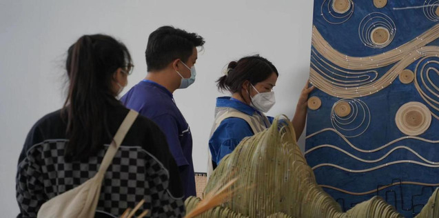 本次布展工作由艺术设计学院教工党支部主导策划,青年教师党员发挥主力军作用,指导学生党员、入党积极分子共同实践,师生齐心协力精心打造了[“藤×交”金审]主题展位,跨越艺术边界,探索乡土技艺、非遗文化、国潮文创、交互实验等方面的无限可能。