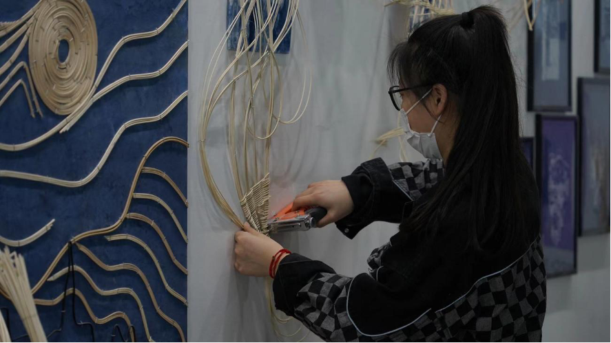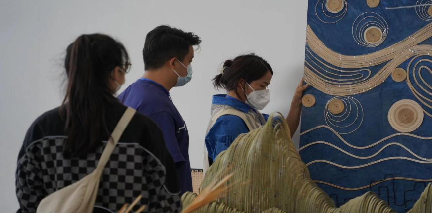 本次布展工作由艺术设计学院教工党支部主导策划,青年教师党员发挥主力军作用,指导学生党员、入党积极分子共同实践,师生齐心协力精心打造了以[“藤×交”金审]为主题,跨越艺术边界,探索乡土技艺、非遗文化、国潮文创、交互实验等方面的无限可能。