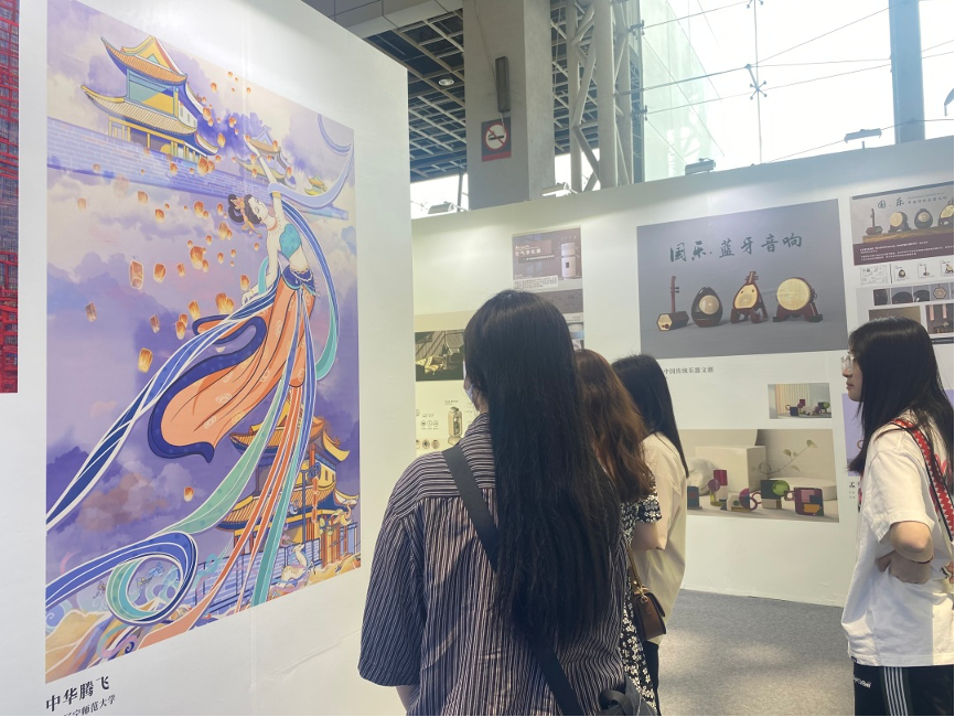 在众多作品中,有相当一部分作品是以中国传统文化、民间艺术为主题创作的,如:非遗“剪纸”作品、民俗“年画”作品、藤编陶瓷作品等,他们都充满了“中国式”标签,同学们深受启发,对祖国博大精深的传统文化,充满着深深的敬意。