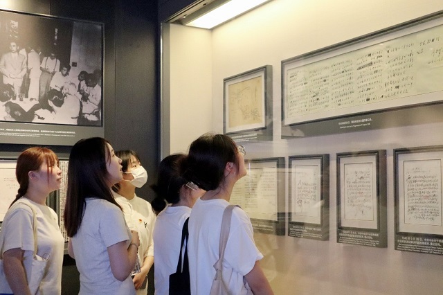 历史是一面镜子,鉴古知今,学史明智,可知兴替。师生党员依次参观了国共南京谈判史料陈列馆、周恩来图书馆、中共代表团办事处旧址,每一个角落都在述说着一段历史,每一块砖瓦都凝聚着智慧与时代的重任。珍贵的文献史料映入眼帘,搭建起红色历史传承的桥梁;一幅幅照片、一个个物件的背后都蕴含着以周恩来为代表的共产党人勇于担当、坚定信念的高尚品格和崇高精神,让全体党员师生的思想得到充分洗礼。