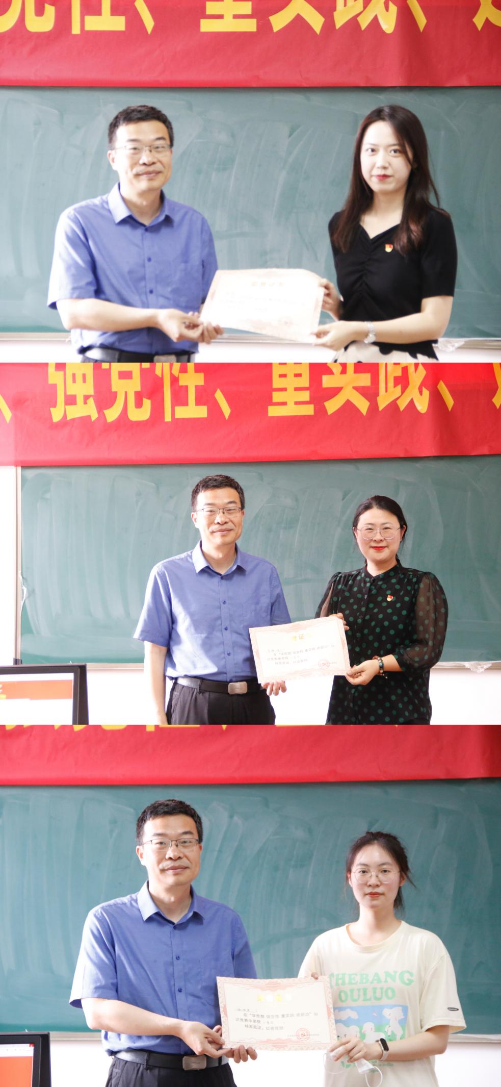 经过激烈角逐,来自管理学院党总支的张星老师摘得桂冠,管理学院党总支书记季媛媛获得二等奖,金融学院施雨卓同学获得三等奖。赛后,院党委书记蔡雪辉为获奖人员颁发奖状。