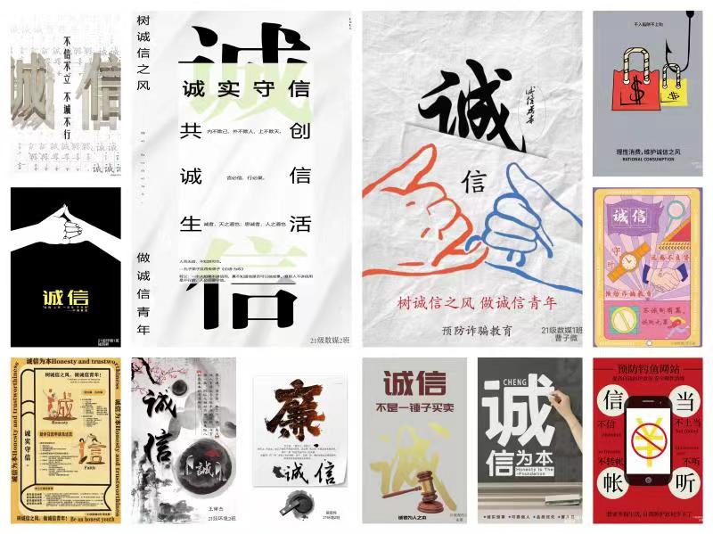 艺术设计学院组织开展了海报设计、演讲比赛、视频制作等系列活动,以多样的形式和丰富的内容吸引学生们积极参与,让每个学生都成为诚实守信的实践者、传播者和维护者。