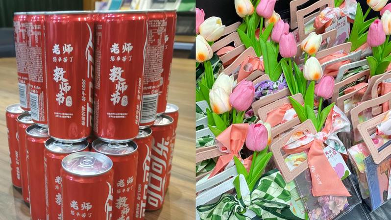 在教师节当天,信息学院分团委、学生会、各班级为本院老师们准备了精美的教师节礼品并定制了教师节专属可乐,同时,同学们在课前、课后共同祝福任课老师教师节快乐,以表达对老师诚挚的祝福和对老师认真负责、无私奉献的感恩之情。