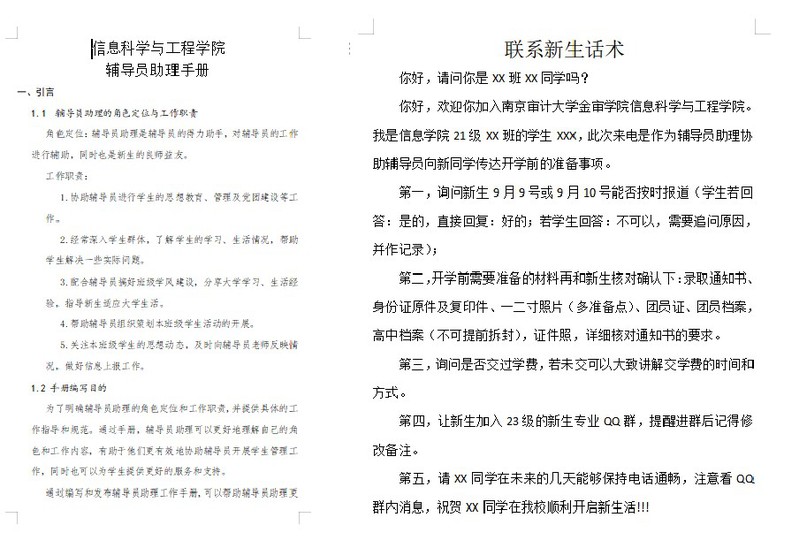 各位辅导员助理撰写工作计划并多次修改完善,做好了各种新生问题的对应方案,最终在暑期合作完成辅导员助理工作手册,为辅导员助理工作提供了制度化的操作规范。