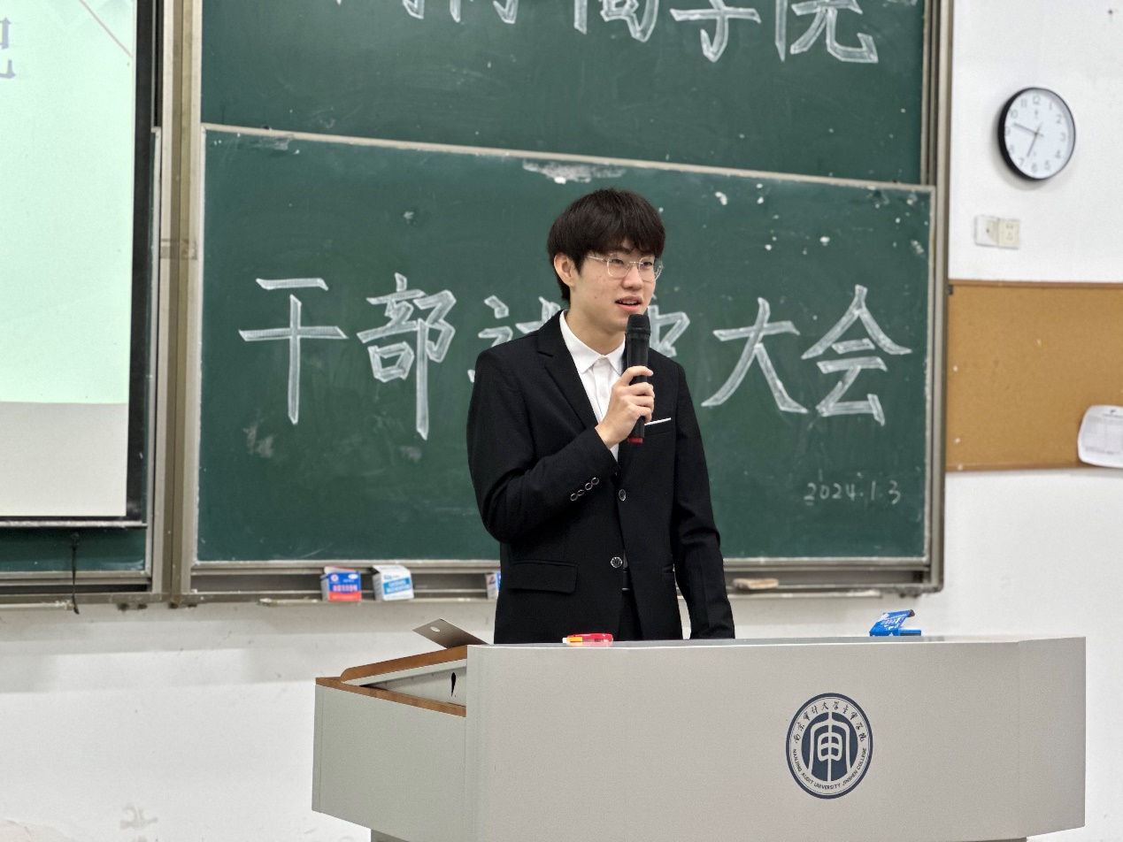 1月3日晚,为完善学生会内部管理,总结本学期分团委学生会各项工作开展情况,展示部门风采,促进各项工作高效运转及不断进步,增强各部门之间的凝聚力,国际商学院分团委学生会于B中107开展了2023年干部述职大会。