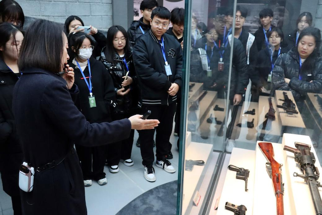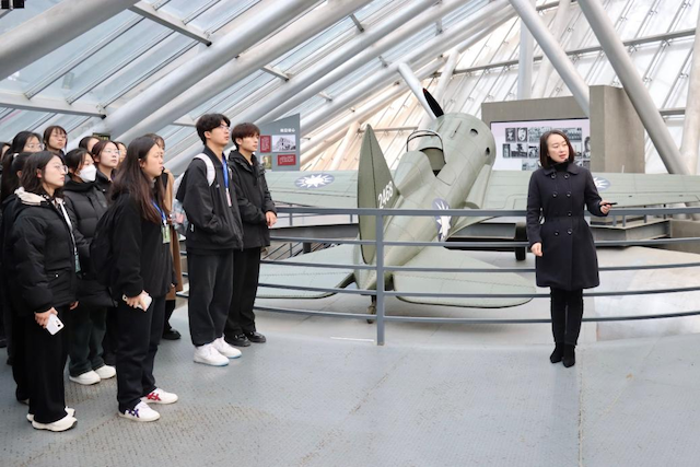 今年12月13日是第10个南京大屠杀死难者国家公祭日,硝烟虽已远去,历史的真相却不能被掩盖,国耻民殇不能被忘怀。伴随着“和平钟声”的敲响,同学们依次参观了“奋勇抗敌”、“国际援华”、“壮志凌云”和“缅怀先烈”四个纪念馆,通过场馆里的文物图片、文史资料以及影像记录全面了解了中、美、苏等国空军联合抗击日军的英勇历史,亲身感受了青年英烈牺牲自我保卫家国、以血肉之躯捍卫中华苍穹的壮举。文字无声,却震耳欲聋。这不屈的抗争时刻提醒着同学们:“强大,来之不易,和平,寸阴是惜。”