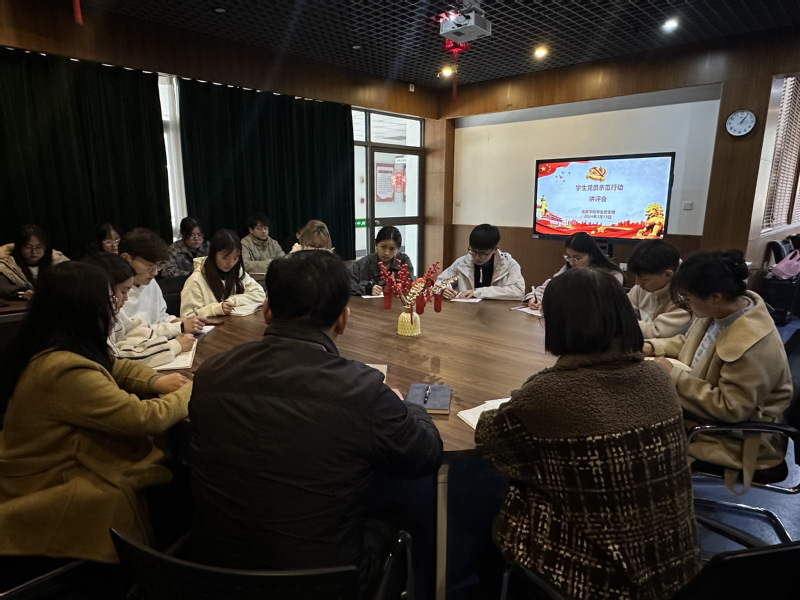 随后,学生党支部书记石伟老师对近期学生党员思想汇报进行点评,表扬学生党员在思想汇报撰写上有很大进步,实实在在,客观反应出自身全面成长情况。但石老师也指出了当前部分学生党员存在的问题,如党员意识不强、先锋模范带头作用发挥不明显、参加活动不积极等,希望全体学生党员和入党积极分子能够对标党员示范行动,提升自身素质,规范行为,实现全面发展。