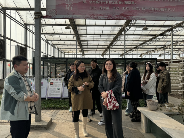 为加强校企合作,促进环境设计专业教学与实践的结合,3月15日,艺术设计学院副院长陈菁菁,环境设计教研室主任吕游,教师陈良梅、潘璐、赵吕欣、陈晓蕾,以及学生代表一行12人,走进南京缘派蔬菜专业合作社。合作社主营八卦洲当地特色蔬菜和葡萄,应用现代农业种植技术,积极引进新品种,进行试种、培育,新技术引进试点,将成功的新品种、种植的新模式免费提供给社员。