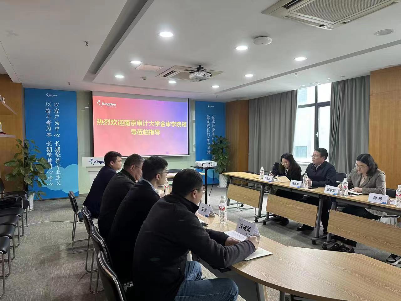 为深化校企协同育人,拓展毕业生就业岗位,3月28日下午,我校会计与审计学院与金蝶开展签约暨就业实习基地授牌仪式。会计与审计学院党总支书记庄怀军、会计与审计学院办公室主任吴学翠及毕业班辅导员前往金蝶软件园访企拓岗。金蝶精一信息科技服务有限公司执行副总裁乐志军、金蝶中国江苏省公司伙伴发展部总监许成军、财务总监王斌等共同出席本次会议。