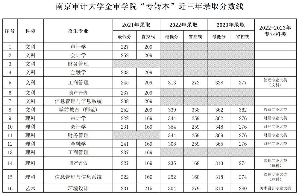 2021-2023年南京审计大学金审学院“专转本”录取分数线