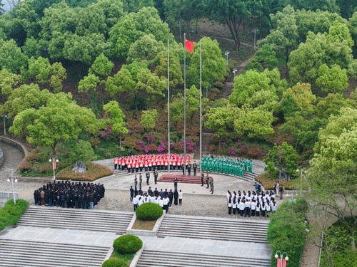 在五四青年节到来之际,为弘扬“五四精神”,教育引导全体青年坚定不移听党话、跟党走,踔厉奋发、勇毅前行,4月29日早上,南京审计大学金审学院举行“学习二十大 永远跟党走 奋进新征程”升旗仪式暨国旗下的微党课。南京审计大学金审学院党委书记蔡雪辉、校长助理孟琪璐、各学院党总支书记、副书记、党委学工部全体人员以及各学院学生党员代表参加了本次活动。
