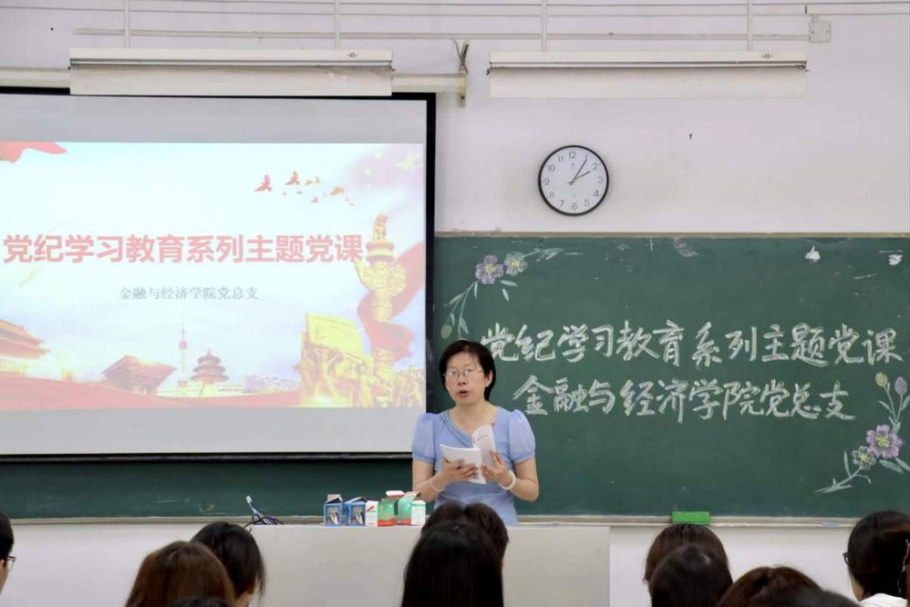 为深化党纪学习教育,引导师生党员进一步学纪、知纪、明纪、守纪,5月22日,金融与经济学院党总支开展“讲好纪律党课”党纪专题教育,党总支副书记吴萍以《中国共产党纪律处分条例》为基础,为师生党员专题讲授一堂纪律党课。
