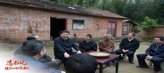 (图为习近平总书记同老区干部群众共商精准扶贫大计)