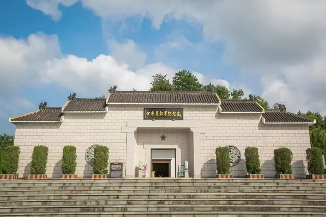金寨县红军纪念堂位列于金寨县革命烈士纪念塔后侧,在纪念塔和红军纪念堂之间还有三层,分别是10级、8级和4级,共22级台阶,它象征着十年土地革命战争、八年抗日战争和十四年解放战争。大门上方,“金寨县红军纪念堂”由洪学智上将题写,庄严肃穆,内侧长廊陈列着新中国成立以来,党和国家领导人及老红军题字碑刻,他们饱含深情的墨迹寄托着对红军的缅怀和对红区未来的希望。