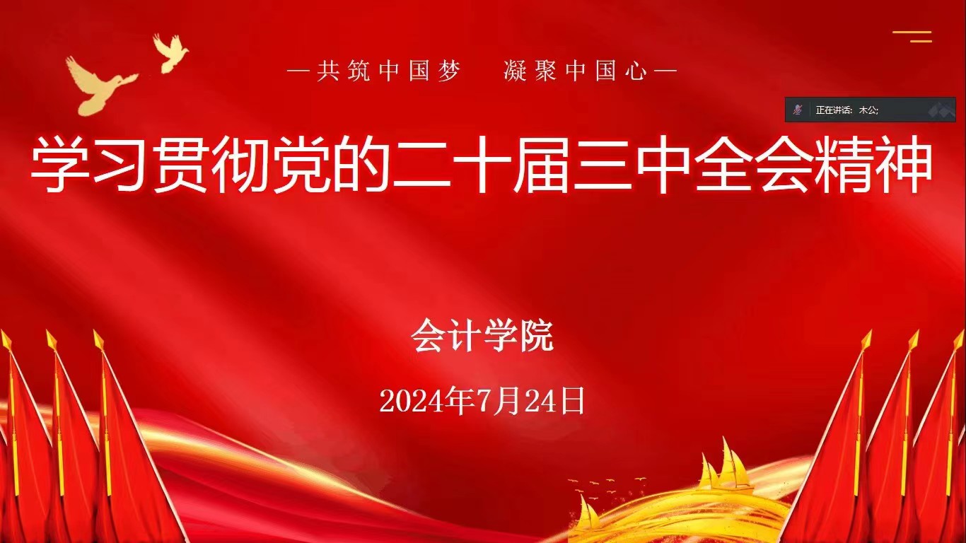 最后会计学院院长吴中春教授对此次学习作总结,他强调深入学习贯彻党的二十届三中全会精神的重要性。要求大家进一步统一思想,明确目标,以更加饱满的热情和扎实的工作投身教育事业,为学院发展和人才培养工作书写新的篇章。