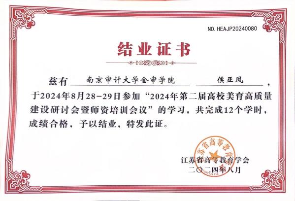 2024年8月28—29日,根据教务处组织,我校教师教育学院姜佳副教授,艺术设计学院朱小红副教授、侯亚凤老师参加了由江苏省高等教育学会主办,南京艺术学院、南京师范大学、南通职业大学、上海交通大学出版社承办的2024年第二届高校美育高质量建设研讨会暨师资培训会议。教育部体育卫生与艺术教育司原副司长万丽君、南京大学艺术学院教授周宪、南京艺术学院党委校长张凌浩等十余所高校的分管校领导、教务处及美育课程建设专家分别就本次会议作了专题讲座或报告,来自全国高校200余名美育、公共艺术课程负责人及骨干教师参加了此次会议。