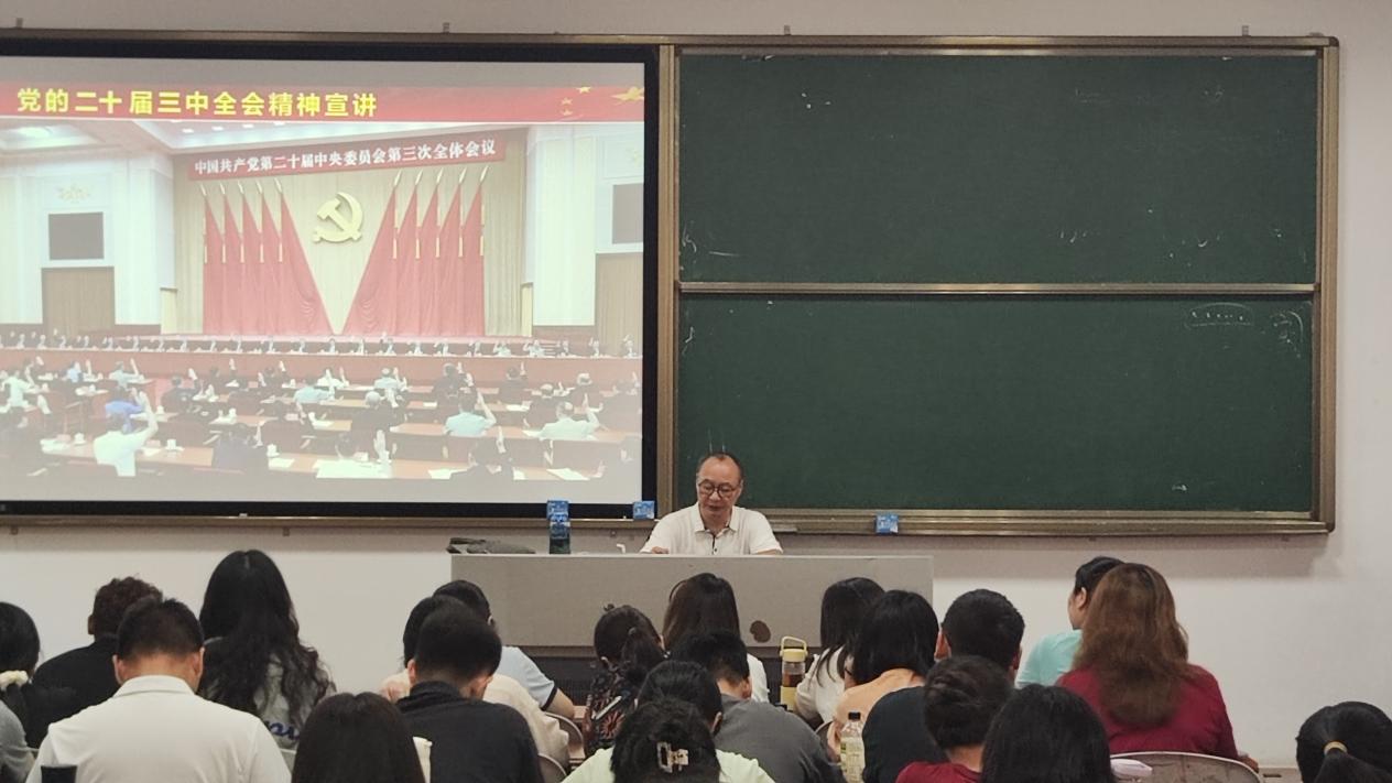 钱教授提出,全体教师要响应党中央号召,深入学习贯彻党的二十届三中全会精神,为进一步坚持和完善中国特色社会主义制度,推进国家治理体系和治理能力现代化,实现两个一百年奋斗目标,实现中华民族伟大复兴的中国梦,团结一致,共同努力,做出我们应有贡献。