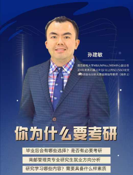 为面对日益激烈和不断变化的社会环境,深入了解考研是大学生追求更高学术水平和职业发展的必经之路,实现对未来的投资和自我能力的提升。10月30日晚,会计学院于C中401举行“财会数字教育大讲堂——你为什么要考研”主题讲座,本次讲座由南京邮电大学MBA/MPAcc教育中心孙建敏老师主讲。
